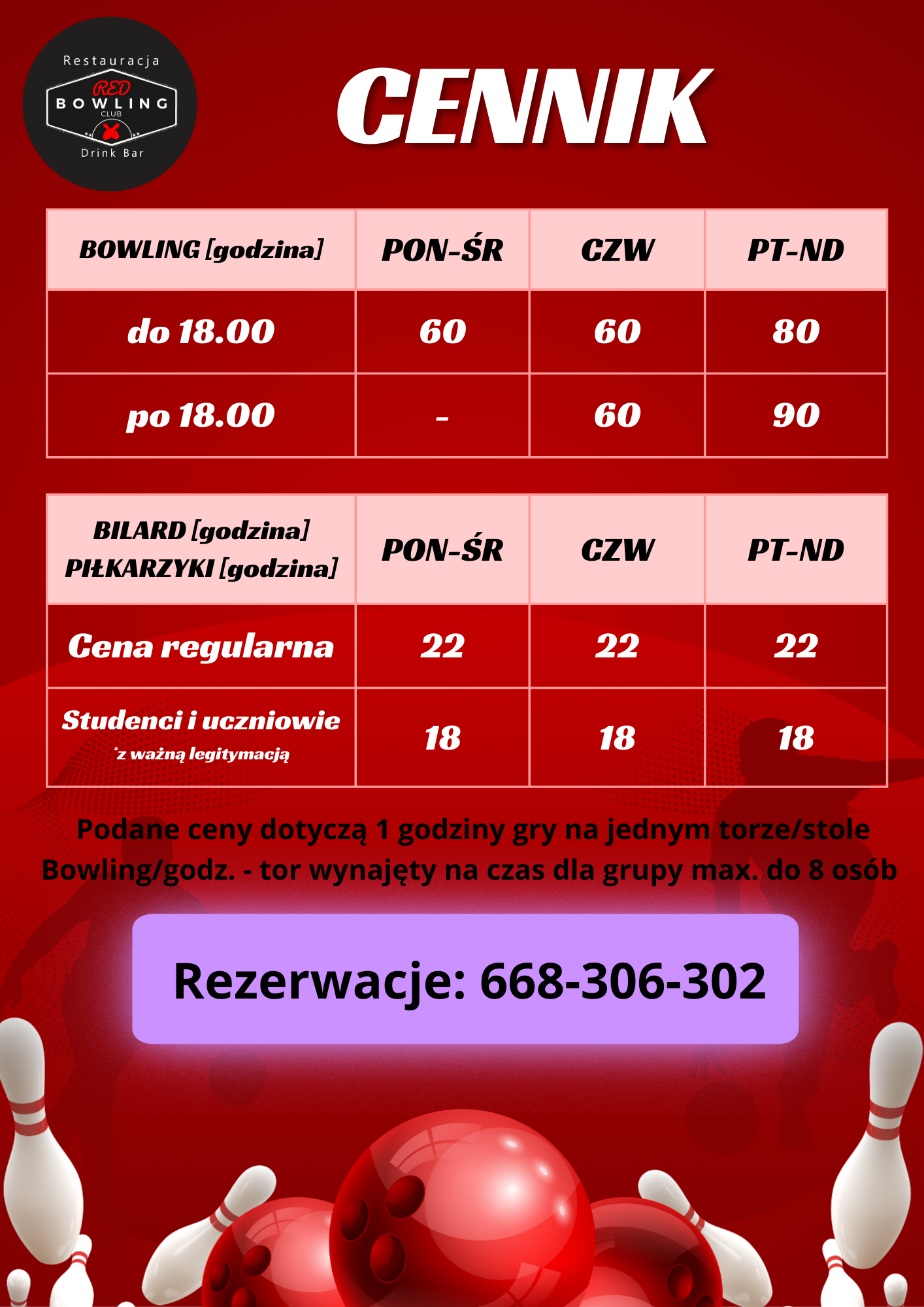 Reserve onlineRed Bowling Club to wyjątkowe miejsce w Krzeszowicach, które łączy w sobie smakowitą kuchnię, rozrywkę i relaks. Idealne zarówno na rodzinny obiad, spotkanie ze znajomymi, jak i wieczór pełen emocji przy kręglach.